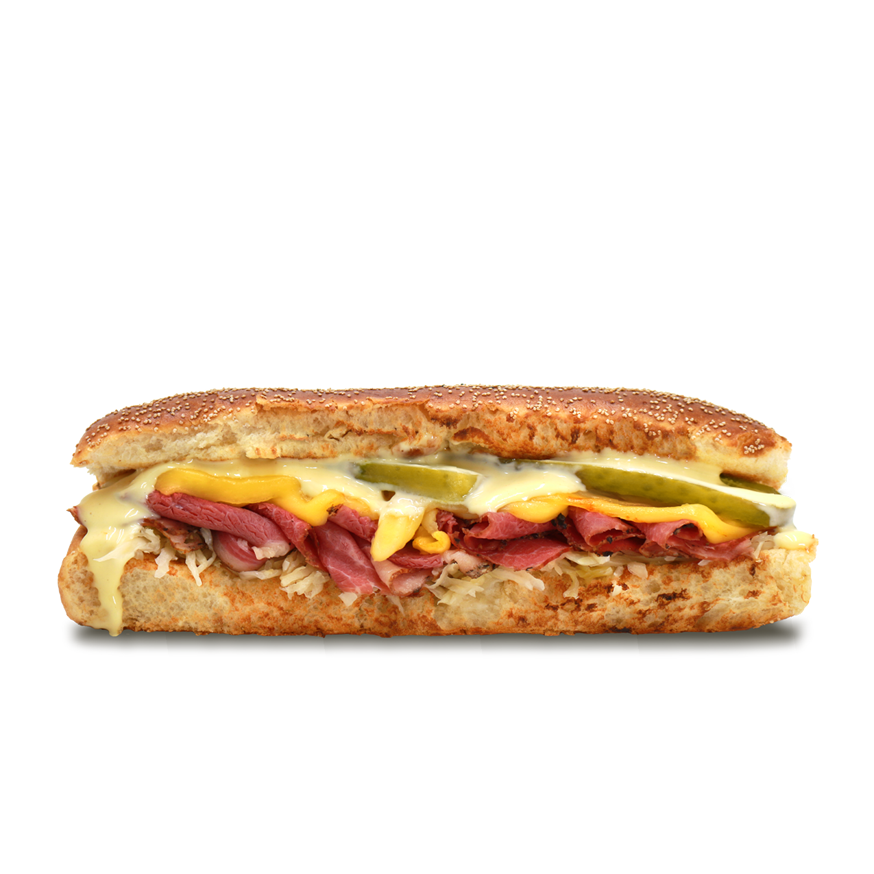mit Pastrami, Sauerkraut, Gewürzgurken, Regionalkäse und Senf-Mayo